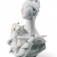La figura dell'agnello di scintillio della porcellana con gli anatroccoli che esaminano una lumaca si è appollaiata su un ramo con i fiori. Altezza: 12 cm; Lunghezza: 10 cm; Profondita: 8 cm