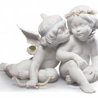 Figura di porcellana luccicante del nostro salvatore sulla croce di legno con una frase incisa sopra. Altezza: 46 cm; Lunghezza: 29 cm; Profondita: 7 cm