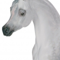 Figura animale in porcellana lucida di serie limitata di cavallo arabo purosangue con pelliccia grigia su base di legno. Altezza: 44 cm; Lunghezza: 46 cm; Profondita: 14 cm