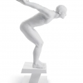 Figura in porcellana bianca lucida e materassino nuotatore nella posizione di partenza con cappello e occhiali. Altezza: 54 cm; Lunghezza: 28 cm; Profondita: 25 cm