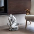 Scultura in porcellana bianca satinata di coppia che si bacia seduto su una roccia decorata con smalti blu e verdi. Altezza: 41 cm; Lunghezza: 31 cm; Profondita: 38 cm