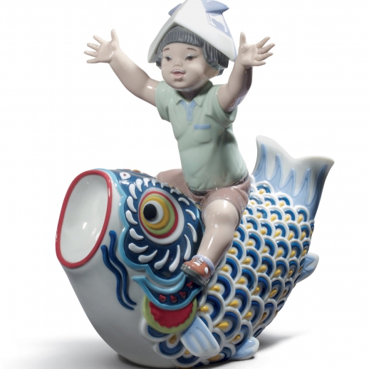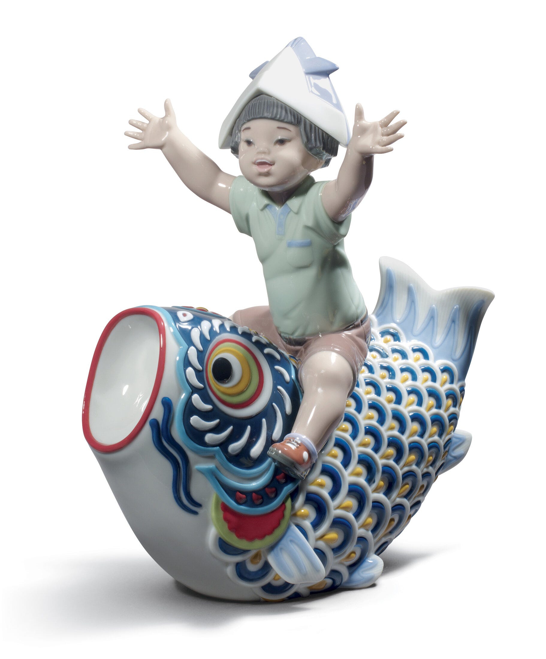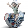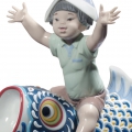 Figura infantile montata su una tenda di porcellana lucida dai colori vivaci e sorprendenti della tradizione giapponese. Altezza: 27 cm; Lunghezza: 18 cm; Profondita: 22 cm