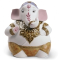 Figura del dio indù Lord Ganesha con corpo umano e testa di elefante in porcellana, mentre suona la chitarra indiana (veena). Serie limitata. Altezza: 16 cm; Lunghezza: 14 cm; Profondita: 12 cm