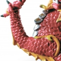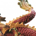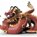 Porcellana scultura lucida e opaca drago rosso con diversi smalti e sopracciglia oro lustro nella testa e capelli sulla parte superiore della spina dorsale. Altezza: 26 cm; Lunghezza: 31 cm; Profondita: 14 cm