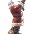 Figura di porcellana glitter di Babbo Natale che solleva un bambino con il berretto, decorato con un intenso colore rosso. Altezza: 38 cm; Lunghezza: 13 cm; Profondita: 16 cm