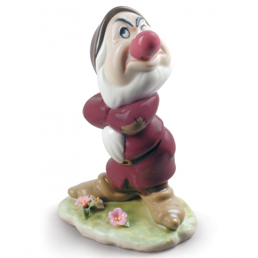 Figura Disney di Brontolo. Decorato con i caratteristici colori del personaggio e tre fiori (due rosa e uno bianco) alla base realizzati a mano. Altezza: 13 cm; Lunghezza: 9 cm; Profondita: 7 cm