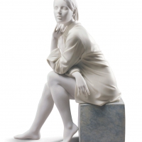 Splendente figura di sassofonista in porcellana elegantemente decorata con colori scuri che poggia su un secchio con smalti rossi. Il sassofono è decorato con lucentezza dorata. Altezza: 29 cm; Lunghezza: 23 cm; Profondita: 13 cm