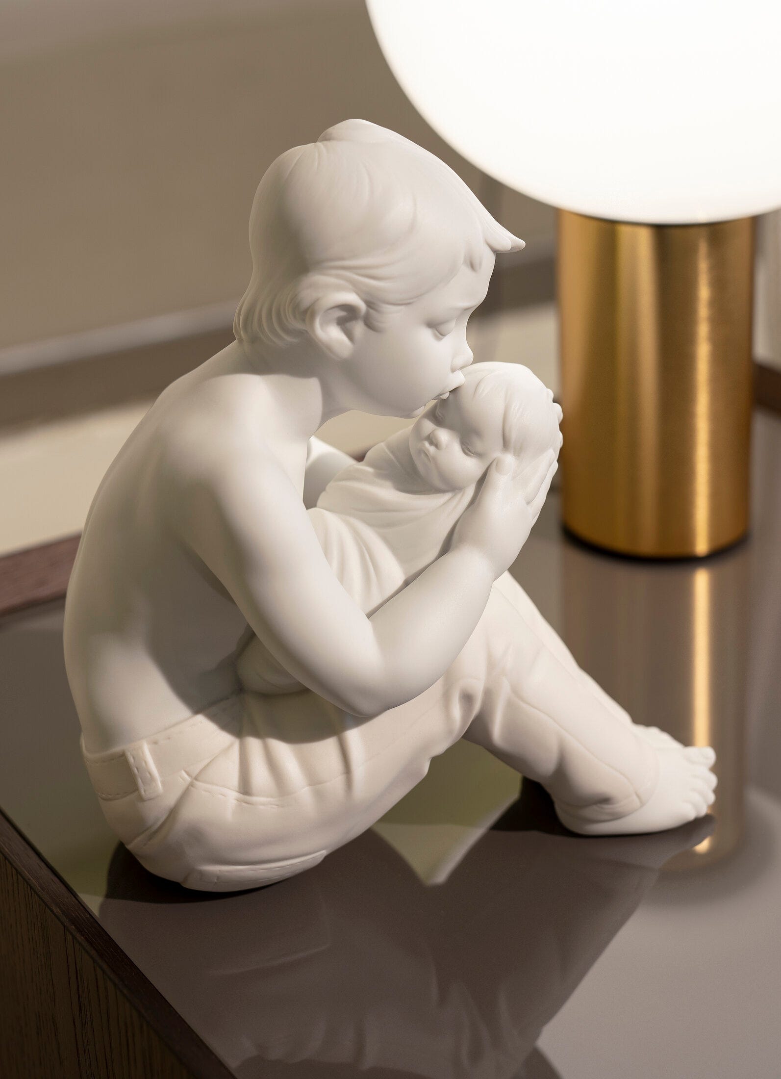 Quest'opera in porcellana rappresenta il potere dell'arte di trasmettere le emozioni più profonde attraverso un gesto, una scena semplice ma toccante. L'amore fraterno rappresentato in tutta la sua purezza e con tutta la magia dell'infanzia. Altezza: 25 cm; Lunghezza: 23 cm; Profondita: 14 cm