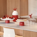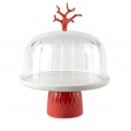 Cake plate from the Coral Collection made in glazed porcelain, decorated in white and red with touches of golden luster. Altezza: 40 cm; Lunghezza: 31 cm; Profondita: 31 cm