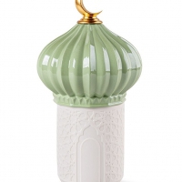 Vase from the Coral Collection made in glazed porcelain, decorated in white and red with touches of golden luster. Altezza: 44 cm; Lunghezza: 16 cm; Profondita: 16 cm