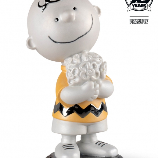Figura di Charlie Brown, realizzata in porcellana opaca e lucida, decorata con toni perlati. Altezza: 22 cm; Lunghezza: 10 cm; Profondita: 10 cm