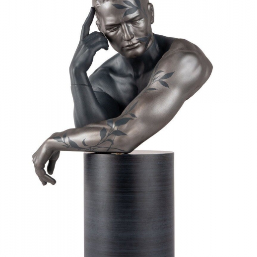 Scultura di porcellana ispirata alla connessione tra l'essere umano e la natura. Va in coppia con un altro busto che rappresenta una donna. Altezza: 51 cm; Lunghezza: 29 cm; Profondita: 26 cm