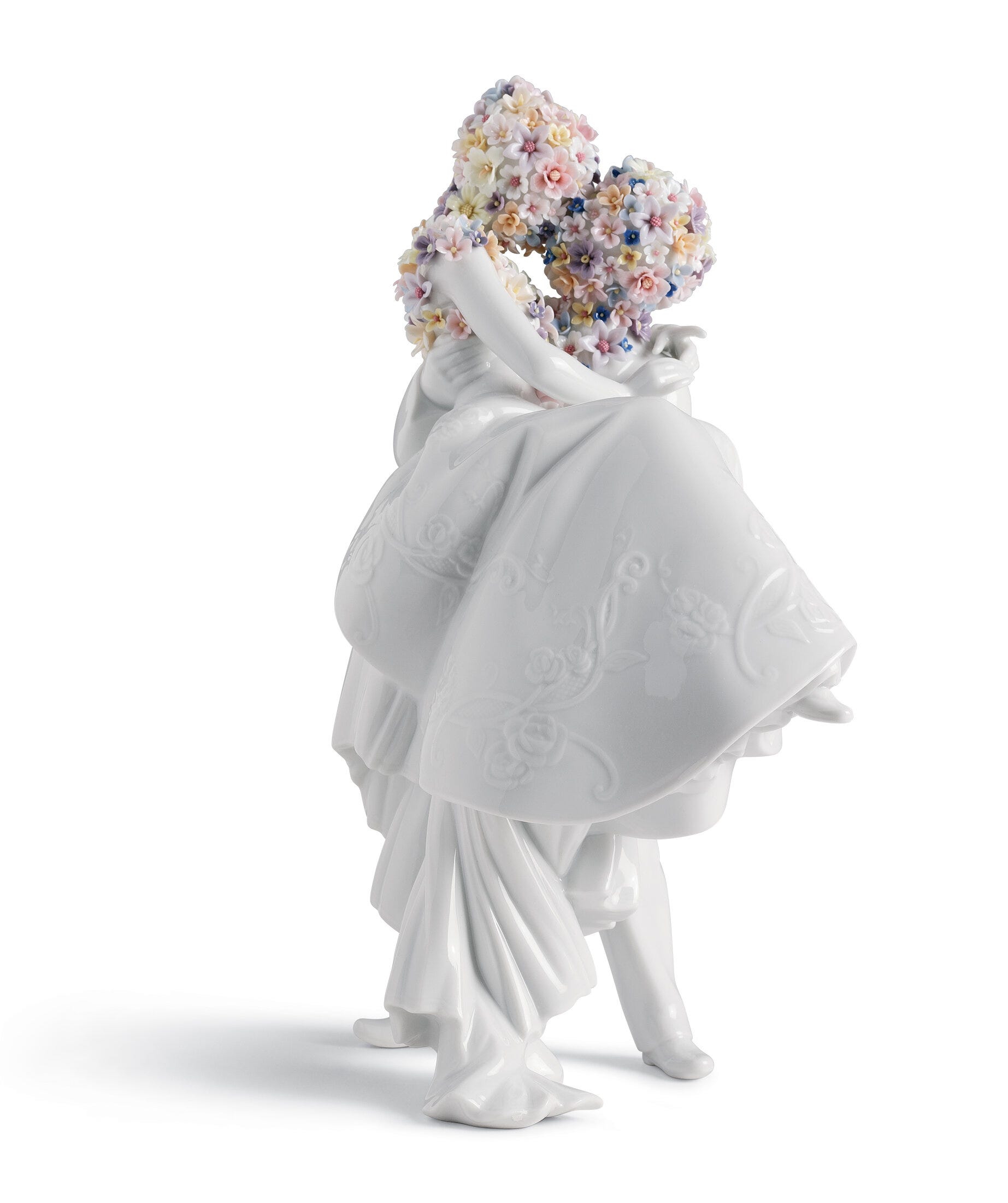 Coppia di sposi in porcellana bianca con visi ricoperti da fiori. disegnati da Clare Page e Harry Richardson che utilizzano i fiori come elemento principale. Altezza: 27 cm; Lunghezza: 17 cm; Profondita: 14 cm;