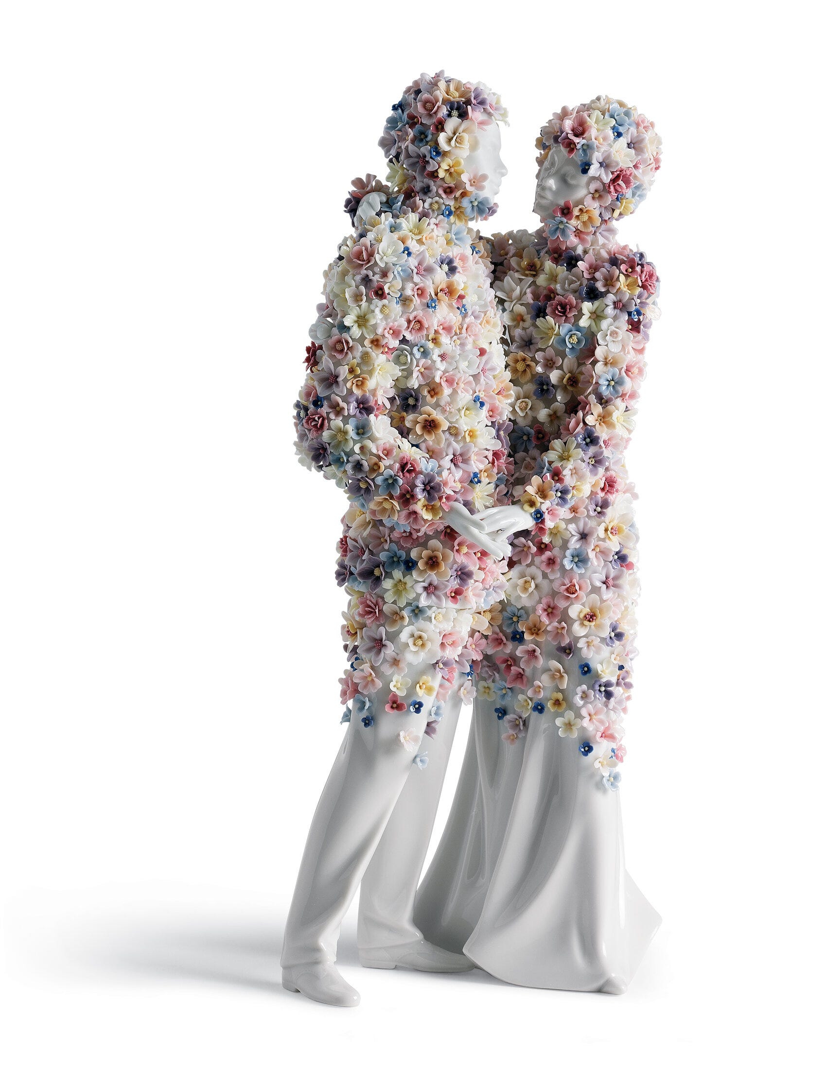 Coppia di sposi in porcellana bianca con visi ricoperti da fiori. disegnati da Clare Page e Harry Richardson che utilizzano i fiori come elemento principale. Altezza: 34 cm; Lunghezza: 17 cm; Profondita: 11 cm;