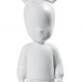 "Figura in porcellana bianca creata da Jaime Hayon per la collezione Atelier LLadró ""the Guest"" unita ad una base in legno bianca". Altezza: 52 cm; Lunghezza: 19 cm; Profondita: 19 cm;