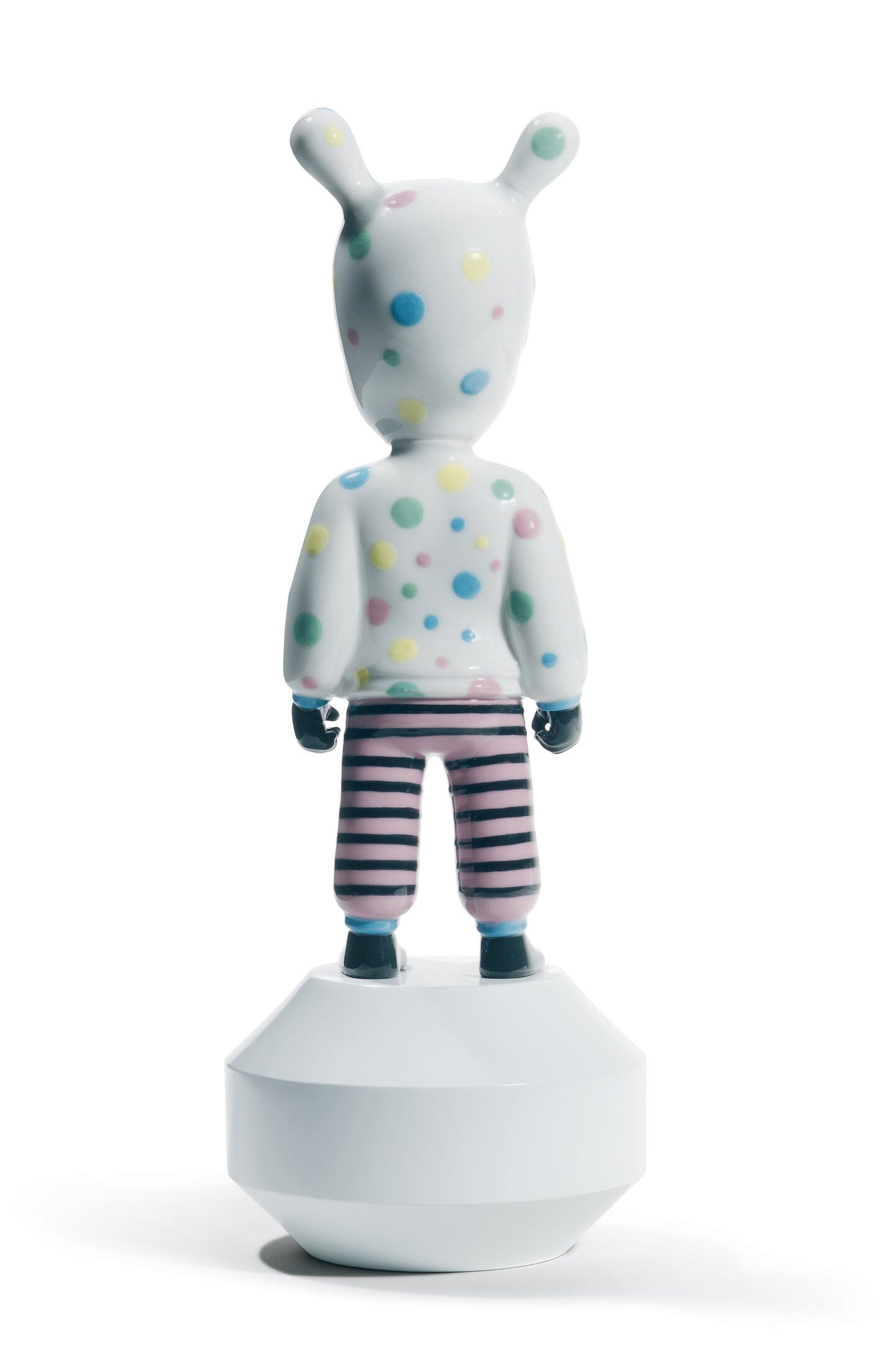 "Figura in porcellana lucida con viso. mani e piedi color nero creata da Devilrobots per la collezione Atelier LLadró ""the Guest"" unita ad una base in legno bianca". Altezza: 30 cm; Lunghezza: 11 cm; Profondita: 11 cm;