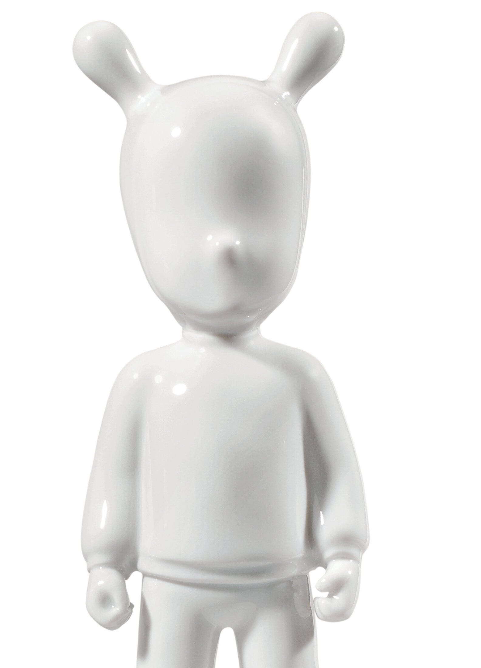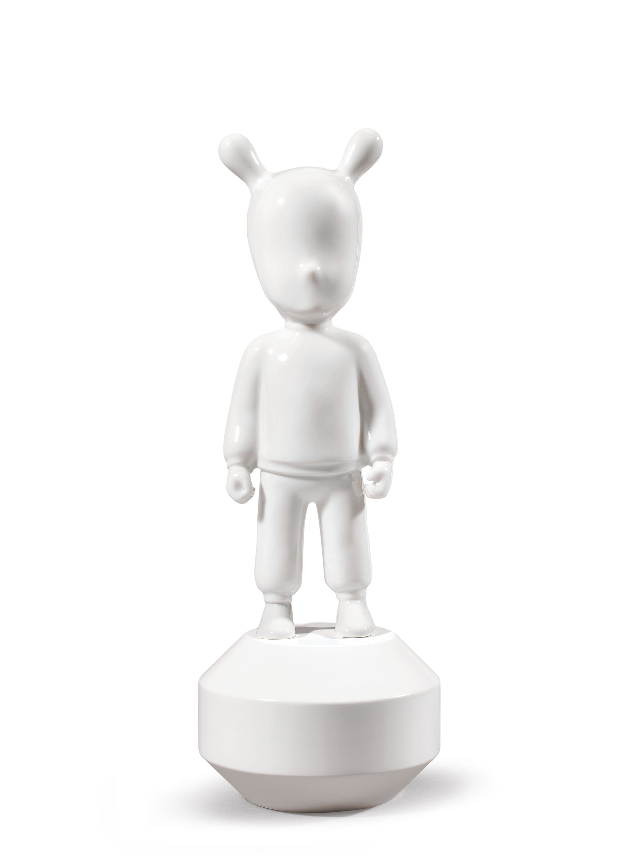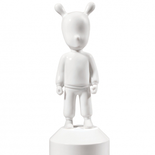 "Figura in porcellana bianca lucida creata da Jaime Hayon per la collezione Atelier LLadró ""the Guest"" unita ad una base in legno bianca". Altezza: 30 cm; Lunghezza: 11 cm; Profondita: 11 cm;