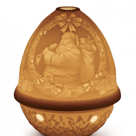 Litofano di porcellana bianca opaca per la decorazione domestica con incisione di Babbo Natale su superficie di porcellana traslucida Altezza: 12 cm; Lunghezza: 9 cm; Profondita: 9 cm
