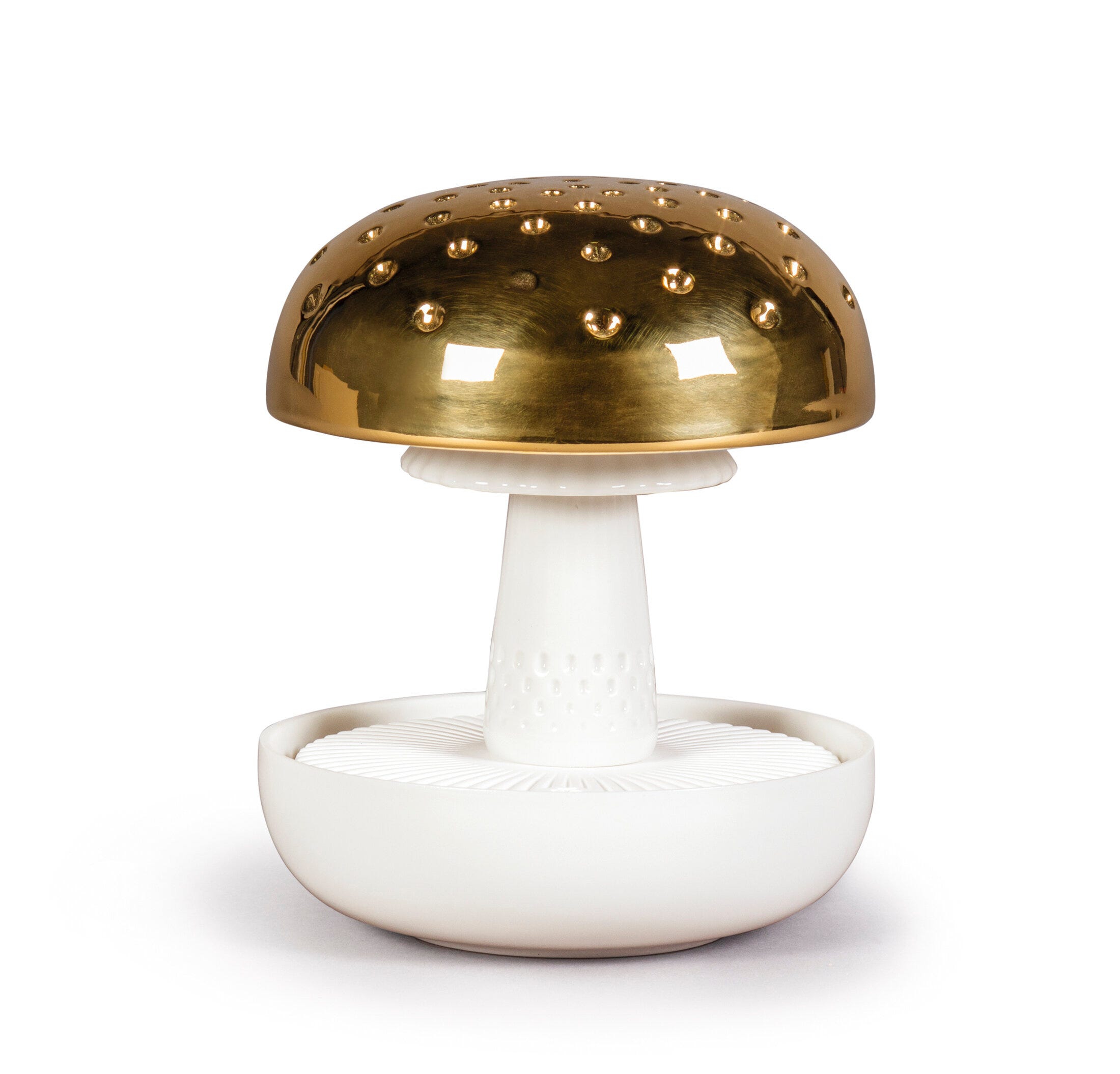 Un diffusore di fragranze per la casa in porcellana. con un'originale estetica ispirata ai funghi selvatici dei nostri boschi e un aroma delicato. Altezza: 14 cm; Lunghezza: 11 cm; Profondita: 11 cm