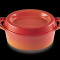 Compatibile con tutte le fonti di calore inclusa induzione e forno. Goditi il momento dell?apertura della confezione del tuo nuovo acquisto! E assicurati di rimuovere tutte le etichette e l?imballaggio. Lava il tuo prodotto Le Creuset in acqua tiepida e sapone, poi risciacqualo e asciugalo accuratamente. Aspetta che il prodotto si raffreddi completamente prima di iniziare a pulirlo. Rimuovi eventuali residui dalla base e dalle pareti laterali del prodotto. Per residui di cibo ostinati, riempi il prodotto di acqua tiepida e sapone, e lascia in ammollo per 15-20 minuti prima di lavarlo come al solito. Non usare detergenti abrasivi o metallo, spugne abrasive o spazzole molto dure e rigide per la pulizia di nessuna delle superfici. Dopo il lavaggio, asciuga accuratamente il prodotto e conservalo in un luogo asciutto. Proteggiti usando sempre delle presine quando maneggi utensili caldi. Ti consigliamo di utilizzare solo gli utensili in silicone Le Creuset oppure quelli in legno o plastica resistente al calore. NON usare coltelli o utensili in metallo per evitare segni e graffi sulla superficie vetrificata del prodotto. Usa il prodotto sull?anello del piano di cottura della misura più appropriata: renderà la cottura del cibo più omogenea e ridurrà il rischio di danni a manici e ai lati. Questo è particolarmente importante per i piani cottura ad induzione: se si utilizza un anello di dimensioni errate, c?è il rischio che il piano cottura non ?riconosca? il prodotto. La cottura a fuoco medio o basso produce i risultati migliori. Fai scaldare il prodotto gradualmente per ottenere sapori straordinari e cottura uniforme. Se è necessario usare un calore elevato, abbassa l?intensità una volta raggiunto il livello di calore desiderato. Non far scivolare il prodotto su un piano cottura in vetro perché potrebbe causare danni alla base del prodotto e al vetro. Solleva sempre il prodotto per appoggiarlo, spostarlo o toglierlo dalla superficie. Versatilità: questo prodotto è adatto a forno, fornelli e al forno in modalità grill. Cibo di grande gusto: la ghisa vetrificata trattiene il calore per cucinare e rosolare in modo uniforme. Le tue deliziose creazioni resteranno calde più a lungo anche a tavola. Preserva la succulenza: il nostro coperchio conserva il vapore generato dalla cottura del cibo ed esalta i sapori, per risultati di cottura straordinari. Non troppo caldo: cucina con un calore costante, da basso a medio, per prenderti cura del tuo prodotto in ghisa vetrificata e ottenere risultati deliziosi. A te la scelta: disponibile in varie misure per le tue esigenze di cucina. Questa classica pentola Le Creuset è nata nel 1934. La parola francese ?doufeu? significa ?fuoco dolce?, infatti questa pentola è ideale per la cottura lenta. La ghisa vetrificata distribuisce il calore in modo uniforme e conserva il vapore generato dalla cottura del cibo per ottenere piatti succulenti, cucinati alla perfezione. Le goccioline si condensano all?interno del coperchio per ricadere sul cibo in maniera uniforme. Per ottenere questo effetto, basta mettere dei cubetti di ghiaccio nella cavità del coperchio.