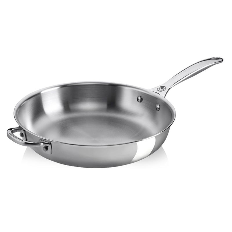 Compatibile con tutte le fonti di calore inclusa induzione e forno. Goditi il momento dell?apertura della confezione del tuo nuovo acquisto! E assicurati di rimuovere tutte le etichette e l?imballaggio. Lava il tuo prodotto Le Creuset in acqua tiepida e sapone, poi risciacqualo e asciugalo accuratamente. Al primo utilizzo, aggiungi olio vegetale o di mais per coprire la base interna. Quindi riscalda gradualmente l?olio, ruotando il prodotto per rivestire le pareti laterali interne. Rimuovi dal fuoco, lascia raffreddare, poi pulisci con della carta assorbente da cucina. Aspetta che il prodotto si raffreddi completamente prima di iniziare a pulirlo. Rimuovi eventuali residui dalla base e dalle pareti laterali del prodotto. Per residui di cibo ostinati, riempi il prodotto di acqua tiepida e sapone, e lascia in ammollo per 15-20 minuti prima di lavarlo come al solito. Proteggiti usando sempre delle presine quando maneggi utensili caldi. Usa il prodotto sull?anello del piano di cottura della misura più appropriata: renderà la cottura del cibo più omogenea e ridurrà il rischio di danni ai manici e ai lati. Questo è particolarmente importante per i piani cottura a induzione: se si utilizza un anello di dimensioni errate, c?è il rischio che il piano cottura non ?riconosca? il prodotto. La cottura a fuoco medio o basso produce i risultati migliori. Fai scaldare la padella gradualmente per ottenere sapori straordinari e cottura uniforme. Se è necessario usare un calore elevato, abbassa l?intensità una volta raggiunto il livello di calore desiderato. Per i piani cottura a induzione, evita di utilizzare la funzione ?booster? in quanto dovrebbe essere utilizzata solo per riscaldare rapidamente grandi volumi d?acqua. Non far scivolare il prodotto su un piano cottura in vetro perché potrebbe causare danni alla base del prodotto e al vetro. Solleva sempre il prodotto per appoggiarlo, spostarlo o toglierlo dalla superficie. Se usi il sale, non versarlo direttamente sulla superficie in acciaio inossidabile. Per evitare danni, aggiungilo al liquido di cottura caldo o al cibo. Se usi il prodotto sotto il grill, lascia sempre uno spazio di almeno 6,5 cm tra la fonte di calore e la parte superiore del prodotto. Quando è caldo, appoggialo su una superficie resistente al calore. Un aiuto prezioso: il pratico manico ti permette di sollevare facilmente il prodotto e spostarlo tra piano cottura, forno e tavolo. Tecnologia a 3 strati: acciaio inossidabile e alluminio di qualità superiore sono sigillati insieme per formare un materiale a 3 strati che distribuisce il calore uniformemente e gradualmente all?intero tegame. Il materiale è caratterizzato da una distribuzione del calore rapida e uniforme ed è particolarmente indicato per la cucina di tutti i giorni. Ottieni la croccantezza perfetta con questa padella in acciaio inox a tre strati. Ideale per cucinare e rosolare carne e patate, si riscalda velocemente e distribuisce il calore uniformemente. Con un peso adatto per l?uso quotidiano è di facile manutenzione e dispone di un pratico manico per sollevarla in sicurezza.