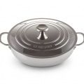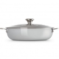 Compatibile con tutte le fonti di calore inclusa induzione e forno. Goditi il momento dell?apertura della confezione del tuo nuovo acquisto! E assicurati di rimuovere tutte le etichette e l?imballaggio. Lava il tuo prodotto Le Creuset in acqua tiepida e sapone, poi risciacqualo e asciugalo accuratamente. Al primo utilizzo, aggiungi olio vegetale o di mais per coprire la base interna. Quindi riscalda gradualmente l?olio, ruotando il prodotto per rivestire le pareti laterali interne. Rimuovi dal fuoco, lascia raffreddare, poi pulisci con della carta assorbente da cucina. Aspetta che il prodotto si raffreddi completamente prima di iniziare a pulirlo. Rimuovi eventuali residui dalla base e dalle pareti laterali del prodotto. Per residui di cibo ostinati, riempi il prodotto di acqua tiepida e sapone, e lascia in ammollo per 15-20 minuti prima di lavarlo come al solito. Proteggiti usando sempre delle presine quando maneggi utensili caldi. Usa il prodotto sull?anello del piano di cottura della misura più appropriata: renderà la cottura del cibo più omogenea e ridurrà il rischio di danni ai manici e ai lati. Questo è particolarmente importante per i piani cottura a induzione: se si utilizza un anello di dimensioni errate, c?è il rischio che il piano cottura non ?riconosca? il prodotto. La cottura a fuoco medio o basso produce i risultati migliori. Fai scaldare la padella gradualmente per ottenere sapori straordinari e cottura uniforme. Se è necessario usare un calore elevato, abbassa l?intensità una volta raggiunto il livello di calore desiderato. Per i piani cottura a induzione, evita di utilizzare la funzione ?booster? in quanto dovrebbe essere utilizzata solo per riscaldare rapidamente grandi volumi d?acqua. Non far scivolare il prodotto su un piano cottura in vetro perché potrebbe causare danni alla base del prodotto e al vetro. Solleva sempre il prodotto per appoggiarlo, spostarlo o toglierlo dalla superficie. Se usi il sale, non versarlo direttamente sulla superficie in acciaio inossidabile. Per evitare danni, aggiungilo al liquido di cottura caldo o al cibo. Se usi il prodotto sotto il grill, lascia sempre uno spazio di almeno 6,5 cm tra la fonte di calore e la parte superiore del prodotto. Quando è caldo, appoggialo su una superficie resistente al calore. Un?icona moderna: caratterizzato dal caratteristico motivo a tre anelli, questo prodotto si abbina alle nostre iconiche pentole in ghisa vetrificata, quindi è l?aggiunta perfetta alla tua collezione Le Creuset. Tecnologia a 3 strati: acciaio inossidabile e alluminio di qualità superiore sono sigillati insieme per formare un materiale a 3 strati che distribuisce il calore uniformemente e gradualmente all?intero tegame. Il materiale è caratterizzato da una distribuzione del calore rapida e uniforme ed è particolarmente indicato per la cucina di tutti i giorni. I comodi indicatori di capacità sono studiati per rendere più facile e divertente la tua esperienza in cucina. Questa casseruola bassa in acciaio inox si riscalda velocemente e distribuisce il calore uniformemente grazie alla struttura a tre strati. I manici laterali posizionati con cura, consentono di utilizzare questo utensile in quasi tutti i forni.