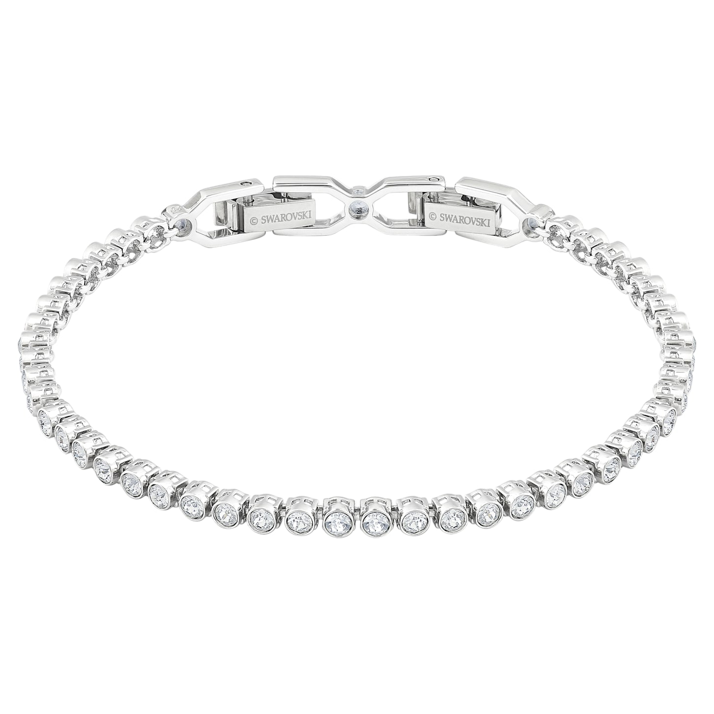 Un bracciale Tennis classico con una brillantezza che non ha bisogno di commenti! Questo raffinato strand di cristalli Cry montati a castone su bracciale Tennis placcato rodio è ideale per un look molto raffinato e minimal, allo stesso tempo perfetto per chi predilige un look decisamente elegante. È caratterizzato da una chiusura con gancio di sicurezza. Il monile è dotato di un extender.