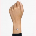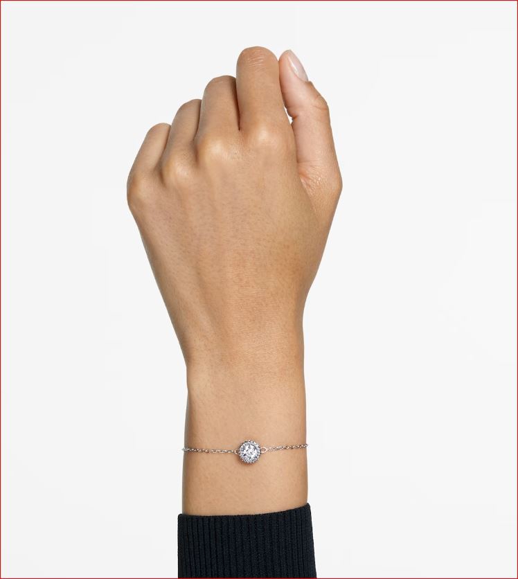 La bellezza sta nella semplicità di questo bracciale semirigido. Frutto di una meticolosa lavorazione, l?affascinante pietra centrale è circondata da uno sfavillante pavé e montata su una raffinata catena placcata rodio. Esprimi la tua sottile eleganza indossandolo con altri articoli della linea Una.