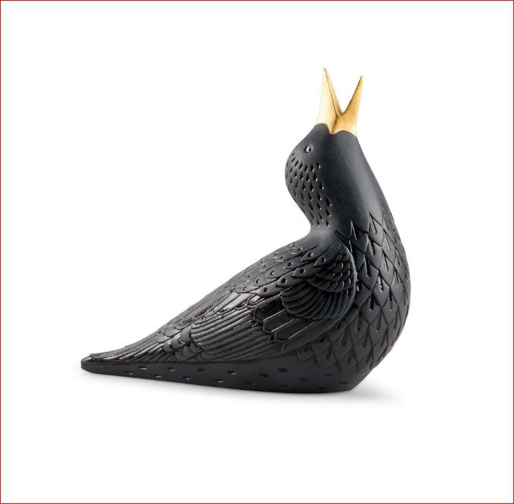 Storno I (nero) Altezza: 17 cm - Lunghezza: 19 cm - Profondita: 9 cm Scultura in porcellana nella quale le forme e il piumaggio di un uccello sono il punto di partenza per una delicata composizione decorativa. Altezza: 17 cm; Lunghezza: 19 cm; Profondita: 9 cm;
