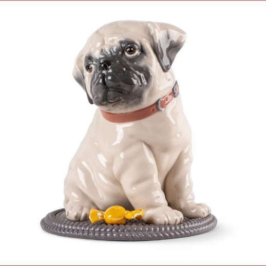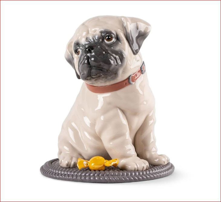 Figura di porcellana che raffigura un carlino, una delle razze canine più apprezzate del mondo.