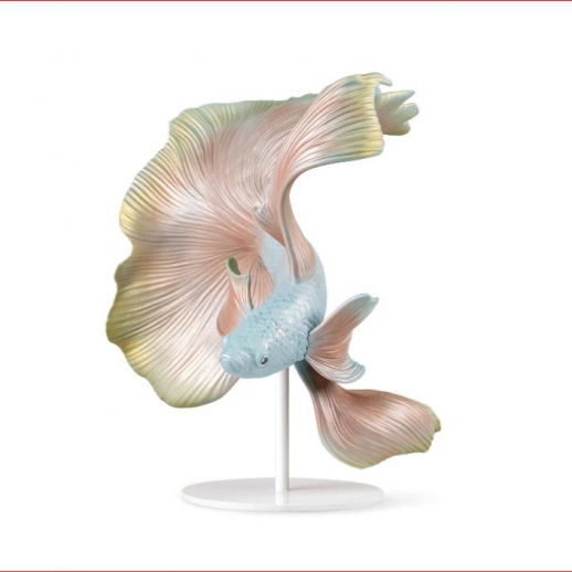 Pesce Betta (sinistra) Altezza: 33 cm - Lunghezza: 28 cm - Profondita: 22 cm Opera in porcellana che raffigura un pesce combattente, uno dei più belli in natura. Altezza: 33 cm; Lunghezza: 28 cm; Profondita: 22 cm