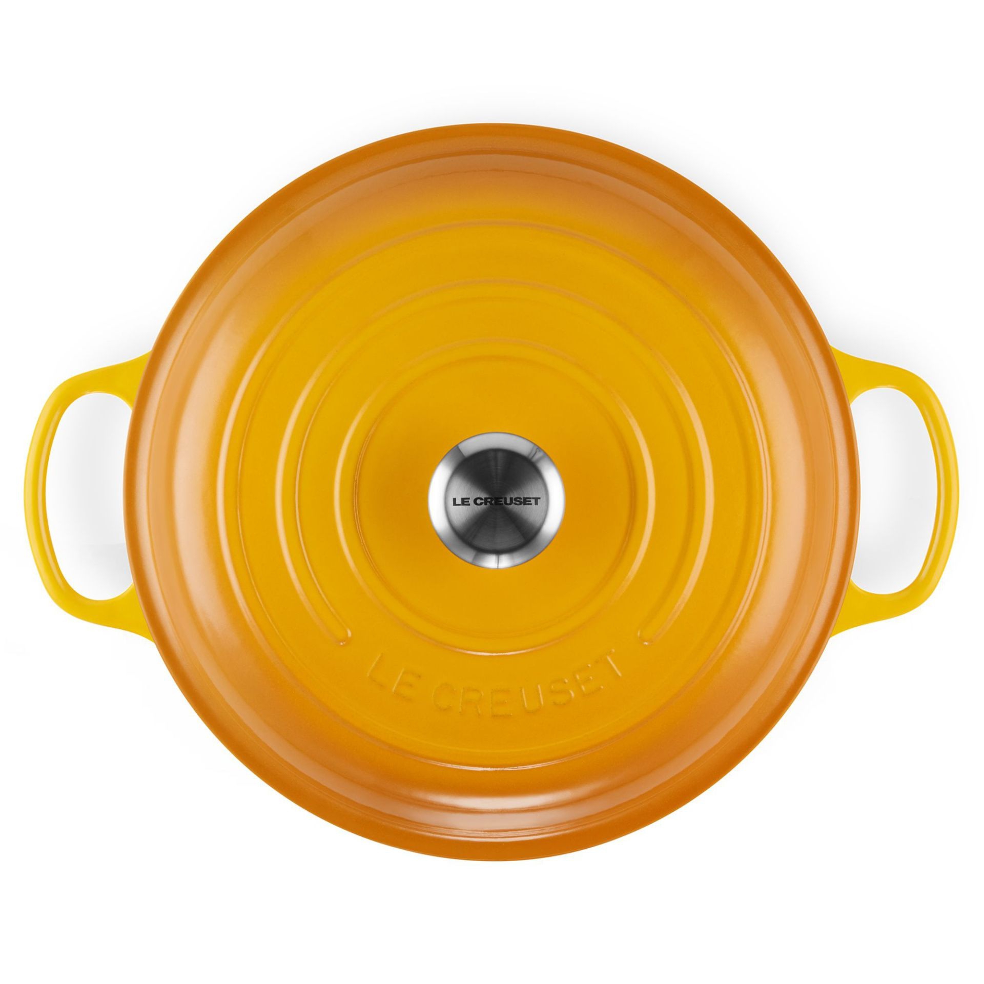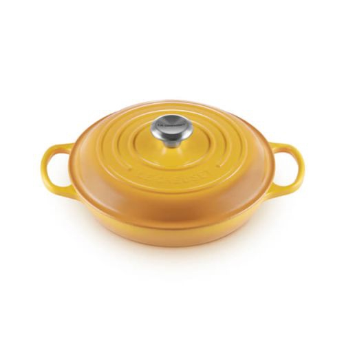 Compatibile con tutte le fonti di calore inclusa induzione e forno. Goditi il momento dell?apertura della confezione del tuo nuovo acquisto! E assicurati di rimuovere tutte le etichette e l?imballaggio. Lava il tuo prodotto Le Creuset in acqua tiepida e sapone, poi risciacqualo e asciugalo accuratamente. Aspetta che il prodotto si raffreddi completamente prima di iniziare a pulirlo. Rimuovi eventuali residui dalla base e dalle pareti laterali del prodotto. Per residui di cibo ostinati, riempi il prodotto di acqua tiepida e sapone, e lascia in ammollo per 15-20 minuti prima di lavarlo come al solito. Non usare detergenti abrasivi o metallo, spugne abrasive o spazzole molto dure e rigide per la pulizia di nessuna delle superfici. Dopo il lavaggio, asciuga accuratamente il prodotto e conservalo in un luogo asciutto. Proteggiti usando sempre delle presine quando maneggi utensili caldi. Ti consigliamo di utilizzare solo gli utensili in silicone Le Creuset oppure quelli in legno o plastica resistente al calore. NON usare coltelli o utensili in metallo per evitare segni e graffi sulla superficie vetrificata del prodotto. Usa il prodotto sull?anello del piano di cottura della misura più appropriata: renderà la cottura del cibo più omogenea e ridurrà il rischio di danni a manici e ai lati. Questo è particolarmente importante per i piani cottura ad induzione: se si utilizza un anello di dimensioni errate, c?è il rischio che il piano cottura non ?riconosca? il prodotto. La cottura a fuoco medio o basso produce i risultati migliori. Fai scaldare il prodotto gradualmente per ottenere sapori straordinari e cottura uniforme. Se è necessario usare un calore elevato, abbassa l?intensità una volta raggiunto il livello di calore desiderato. Non far scivolare il prodotto su un piano cottura in vetro perché potrebbe causare danni alla base del prodotto e al vetro. Solleva sempre il prodotto per appoggiarlo, spostarlo o toglierlo dalla superficie. Il nostro pomolo resistente al calore (fino a 260 °C) è studiato per un?ottima presa, anche utilizzando una presina per sollevare il coperchio. Pulizia rapida: un sottile strato interno vetrificato rende più facile la pulizia. Manici da sogno: grazie ai nostri grandi manici, puoi spostarti facilmente dal piano cottura al tavolo, anche usando i guanti da forno. Versatilità: questo prodotto è adatto a forno, fornelli e al forno in modalità grill. Cibo di grande gusto: la ghisa vetrificata trattiene il calore per cucinare e rosolare in modo uniforme. Le tue deliziose creazioni resteranno calde più a lungo anche a tavola. Preserva la succulenza: il nostro coperchio conserva il vapore generato dalla cottura del cibo ed esalta i sapori, per risultati di cottura straordinari. Facile da impugnare: i manici eleganti e comodi consentono di sollevare il prodotto in sicurezza. Un arcobaleno di colori: disponibile in un?ampia scelta di colori, la nostra gamma aggiungerà un tocco di colore alla tua cucina. Non troppo caldo: cucina con un calore costante, da basso a medio, per prenderti cura del tuo prodotto in ghisa vetrificata e ottenere risultati deliziosi. A te la scelta: disponibile in varie misure per le tue esigenze di cucina. Realizzati nella nostra fonderia francese, i nostri prodotti in ghisa vetrificata sono diventati leggenda nel mondo dell?arte culinaria. Questo tegame basso non fa eccezione. La forma larga e piatta e i lati poco profondi lo rendono perfetto per rosolare carne e verdure, cuocere a fuoco lento, friggere e cuocere in forno. Esalta anche la caramellizzazione, per pietanze ancora più invitanti.