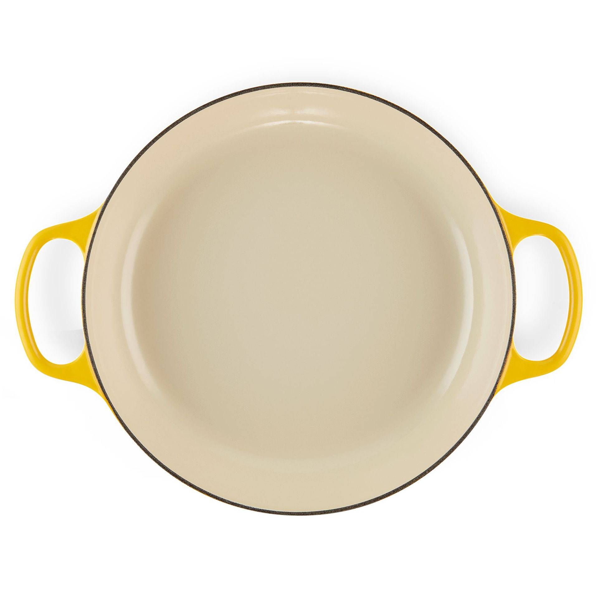 Compatibile con tutte le fonti di calore inclusa induzione e forno. Goditi il momento dell?apertura della confezione del tuo nuovo acquisto! E assicurati di rimuovere tutte le etichette e l?imballaggio. Lava il tuo prodotto Le Creuset in acqua tiepida e sapone, poi risciacqualo e asciugalo accuratamente. Aspetta che il prodotto si raffreddi completamente prima di iniziare a pulirlo. Rimuovi eventuali residui dalla base e dalle pareti laterali del prodotto. Per residui di cibo ostinati, riempi il prodotto di acqua tiepida e sapone, e lascia in ammollo per 15-20 minuti prima di lavarlo come al solito. Non usare detergenti abrasivi o metallo, spugne abrasive o spazzole molto dure e rigide per la pulizia di nessuna delle superfici. Dopo il lavaggio, asciuga accuratamente il prodotto e conservalo in un luogo asciutto. Proteggiti usando sempre delle presine quando maneggi utensili caldi. Ti consigliamo di utilizzare solo gli utensili in silicone Le Creuset oppure quelli in legno o plastica resistente al calore. NON usare coltelli o utensili in metallo per evitare segni e graffi sulla superficie vetrificata del prodotto. Usa il prodotto sull?anello del piano di cottura della misura più appropriata: renderà la cottura del cibo più omogenea e ridurrà il rischio di danni a manici e ai lati. Questo è particolarmente importante per i piani cottura ad induzione: se si utilizza un anello di dimensioni errate, c?è il rischio che il piano cottura non ?riconosca? il prodotto. La cottura a fuoco medio o basso produce i risultati migliori. Fai scaldare il prodotto gradualmente per ottenere sapori straordinari e cottura uniforme. Se è necessario usare un calore elevato, abbassa l?intensità una volta raggiunto il livello di calore desiderato. Non far scivolare il prodotto su un piano cottura in vetro perché potrebbe causare danni alla base del prodotto e al vetro. Solleva sempre il prodotto per appoggiarlo, spostarlo o toglierlo dalla superficie. Il nostro pomolo resistente al calore (fino a 260 °C) è studiato per un?ottima presa, anche utilizzando una presina per sollevare il coperchio. Pulizia rapida: un sottile strato interno vetrificato rende più facile la pulizia. Manici da sogno: grazie ai nostri grandi manici, puoi spostarti facilmente dal piano cottura al tavolo, anche usando i guanti da forno. Versatilità: questo prodotto è adatto a forno, fornelli e al forno in modalità grill. Cibo di grande gusto: la ghisa vetrificata trattiene il calore per cucinare e rosolare in modo uniforme. Le tue deliziose creazioni resteranno calde più a lungo anche a tavola. Preserva la succulenza: il nostro coperchio conserva il vapore generato dalla cottura del cibo ed esalta i sapori, per risultati di cottura straordinari. Facile da impugnare: i manici eleganti e comodi consentono di sollevare il prodotto in sicurezza. Un arcobaleno di colori: disponibile in un?ampia scelta di colori, la nostra gamma aggiungerà un tocco di colore alla tua cucina. Non troppo caldo: cucina con un calore costante, da basso a medio, per prenderti cura del tuo prodotto in ghisa vetrificata e ottenere risultati deliziosi. A te la scelta: disponibile in varie misure per le tue esigenze di cucina. Realizzati nella nostra fonderia francese, i nostri prodotti in ghisa vetrificata sono diventati leggenda nel mondo dell?arte culinaria. Questo tegame basso non fa eccezione. La forma larga e piatta e i lati poco profondi lo rendono perfetto per rosolare carne e verdure, cuocere a fuoco lento, friggere e cuocere in forno. Esalta anche la caramellizzazione, per pietanze ancora più invitanti.