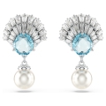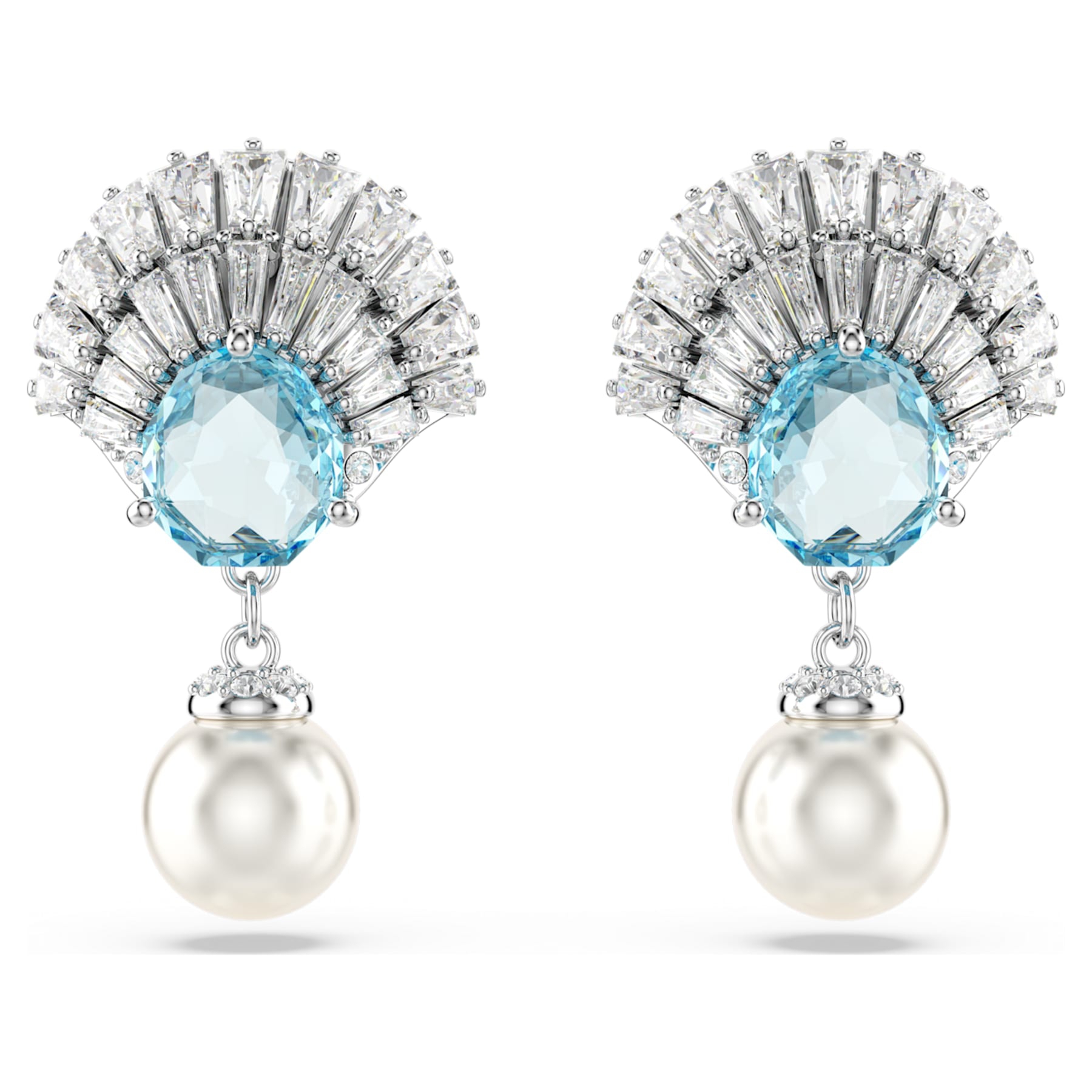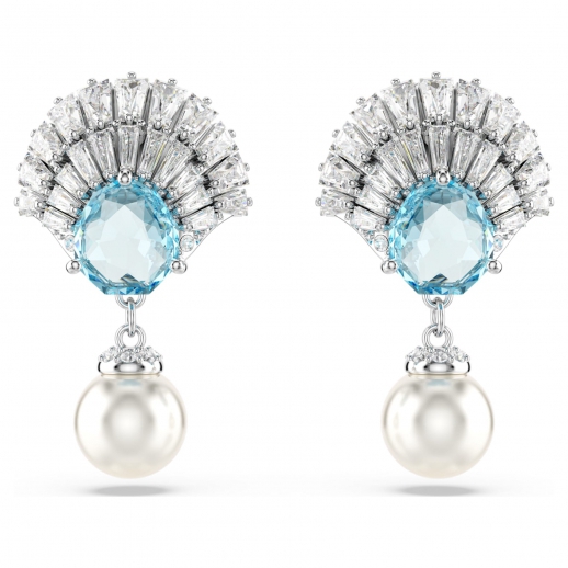 Questi straordinari orecchini Idyllia sono perfetti per uno styling elegante e gioioso. Ogni design a forma di conchiglia è placcato rodio e impreziosito da una serie di Swarovski Zirconia trasparenti e da uno splendente cristallo centrale blu. Il gioiello è inoltre accentuato da un?unica Crystal Pearl bianca, delicatamente sospesa alla parte inferiore. Una scelta glamour durante il giorno o per le occasioni serali.