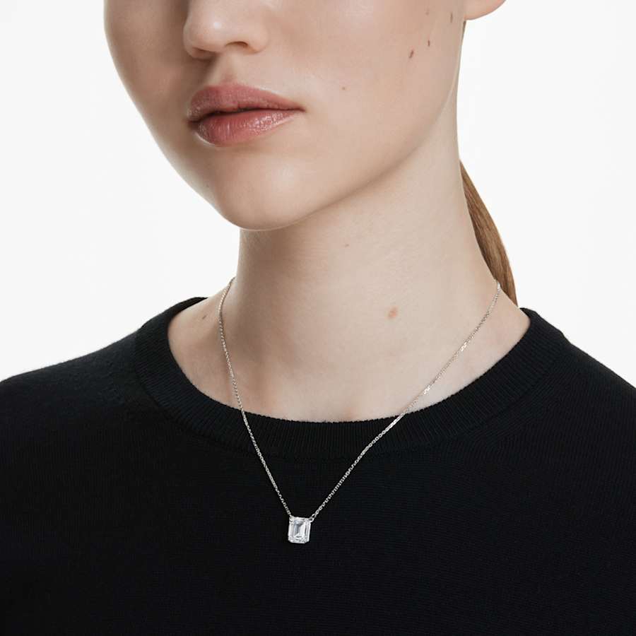 Una scintillante interpretazione del caratteristico ottagono di Swarovski, questo pendente Stilla sprigiona luce da ogni angolo. Sospeso su un?elegante catena con gancio a moschettone, il design placcato rodio presenta una singola Swarovski Zirconia al centro. Questa creazione multisfaccettata è un?adorabile idea regalo per un?occasione speciale.