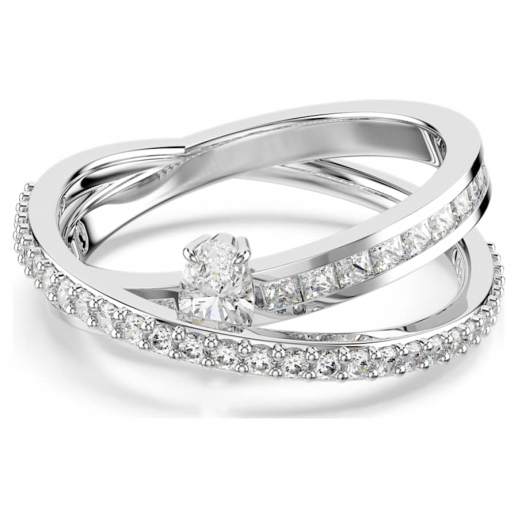Questo anello Hyperbola intrecciato integra più stili in un unico design meravigliosamente compatto. Le sue due fasce placcate rodio sovrapposte sono impreziosite da Swarovski Zirconia trasparenti con montature a binario e a griffe. Un cristallo aggiuntivo taglio Oval è inframmezzato per un impatto aggiuntivo. Abbinalo ad un bangle coordinato per un look davvero mozzafiato.