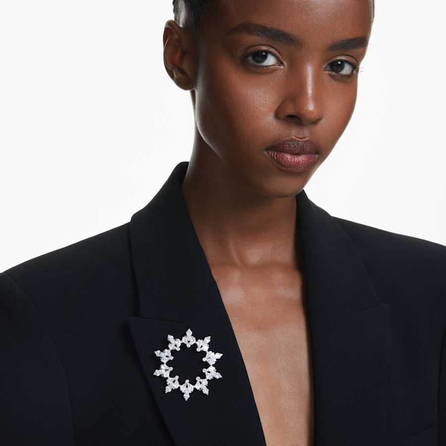 La bellezza unica della natura è splendidamente riprodotta in questa spettacolare spilla fiocco di neve. La creazione placcata rodio è un esempio mozzafiato di maestria Swarovski del taglio, e presenta una serie di Swarovski Zirconia sfaccettate ad arte che si uniscono per formare un motivo invernale al contempo moderno e classico. Abbina questa luccicante creazione ad un outfit monocromatico in una tonalità intensa per garantire il massimo impatto.