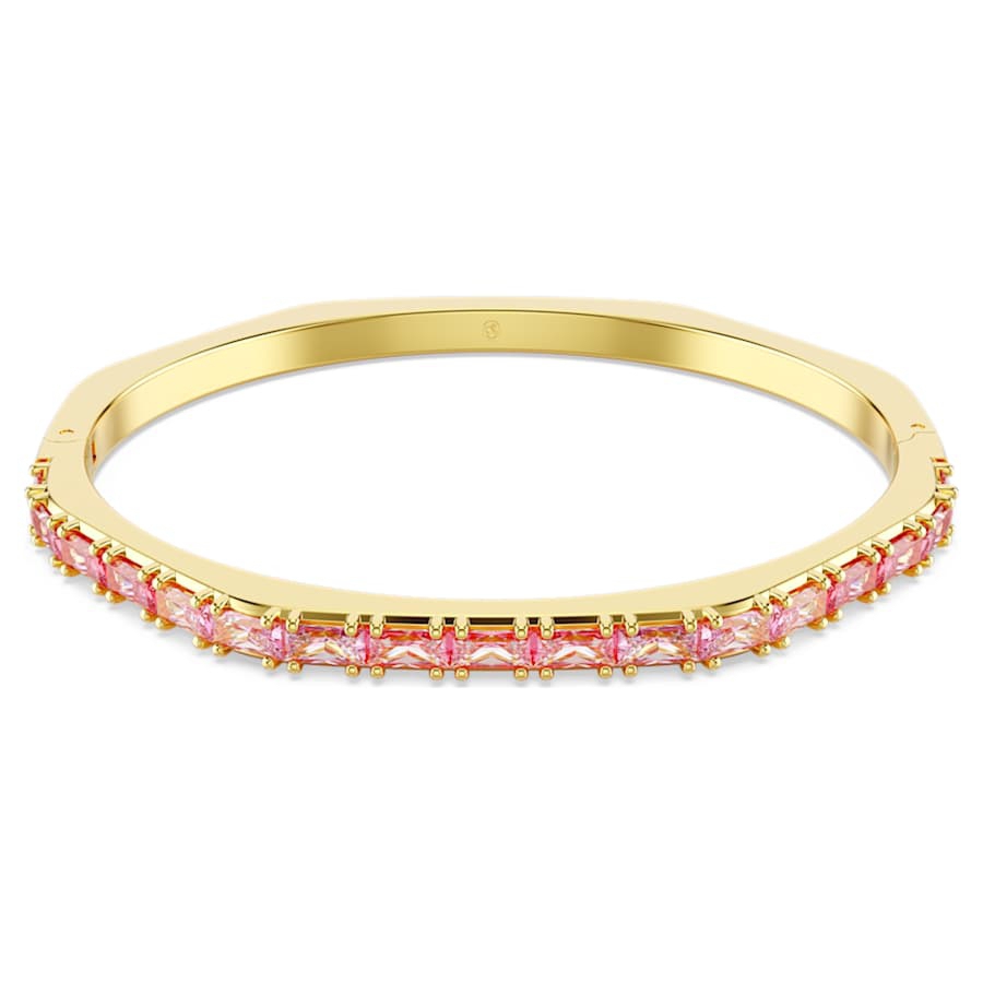 Accendi il tuo look quotidiano con questo bangle Matrix con cerniera. Il design placcato in tonalità oro è realizzato nell?emblematica forma ottagonale di Swarovski ed è decorato in modo giocoso con una sfumatura di Swarovski Zirconia rosa taglio Baguette incastonate orizzontalmente. Perfetto da abbinare ad altri bangle Matrix, è un tripudio del colore distintivo di Swarovski per esprimere al meglio la tua personalità più vivace.