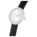 Riflettendo l?iconica forma dei gioielli Matrix Tennis di Swarovski, questo orologio si distingue per la sua eleganza impreziosita da cristalli. Il design da 30 mm in acciaio inossidabile presenta un pavé di 30 cristalli Cry sulla lunetta, mentre il quadrante con motivo sunray è ulteriormente impreziosito da cristalli per gli indici delle ore e include il logo cigno a ore 12. Intorno al polso, il comfort è assicurato dal cinturino in pelle nera, con finitura satinata e sistema a rilascio rapido. Questo orologio Swiss Made è resistente all?acqua fino a 50 metri ed è completato da un singolo cristallo incastonato nella corona. Indossalo insieme ai gioielli della famiglia Matrix Tennis per un look impeccabile.