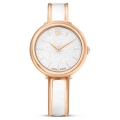Un gioiello e al tempo stesso un orologio, questo orologio Crystalline Bangle è uno scintillante accessorio da indossare tutti i giorni. Il design da 32 mm in acciaio inossidabile è rifinito in tonalità oro rosa e si indossa al polso con un bangle regolabile, caratterizzato da un?elegante sezione centrale in smalto bianco. In un sublime esempio della tecnica Crystalline di Swarovski, il quadrante è decorato con circa 1.016 cristalli, che brillano tra gli esili indici delle ore e il logo cigno a ore 12. Un ulteriore cristallo è incastonato anche nella corona. Questo orologio Swiss Made è resistente all?acqua fino a 50 metri e offre uno stile scintillante a ogni ora del giorno.