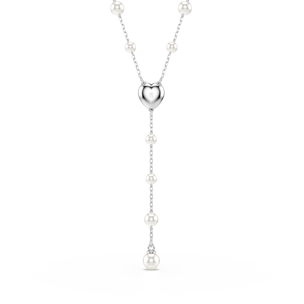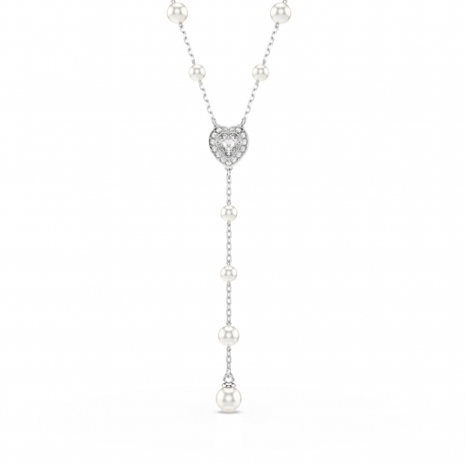 Realizzata con finezza e un?intramontabile bellezza, questa collana a T è emblematica della ?Joyful Extravagance? di Swarovski. Il design placcato rodio presenta una delicata catena impreziosita da Crystal Pearls Swarovski. Un motivo a forma di cuore è posto al centro ed è circondato da un brillante pavé, mentre il filo pendente dona un tocco finale di sofisticatezza. Abbina questa collana ad altri gioielli coordinati per creare le tue personali combinazioni radiose.