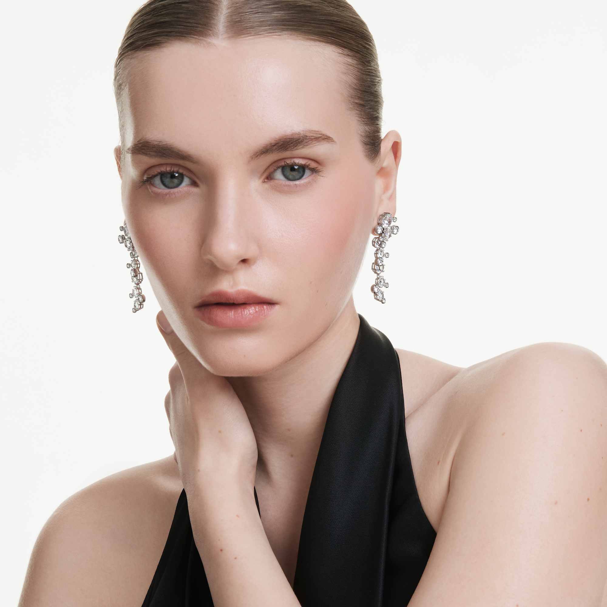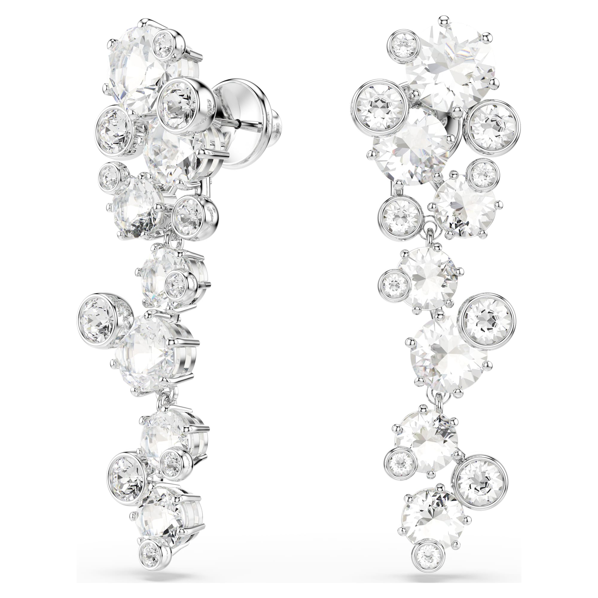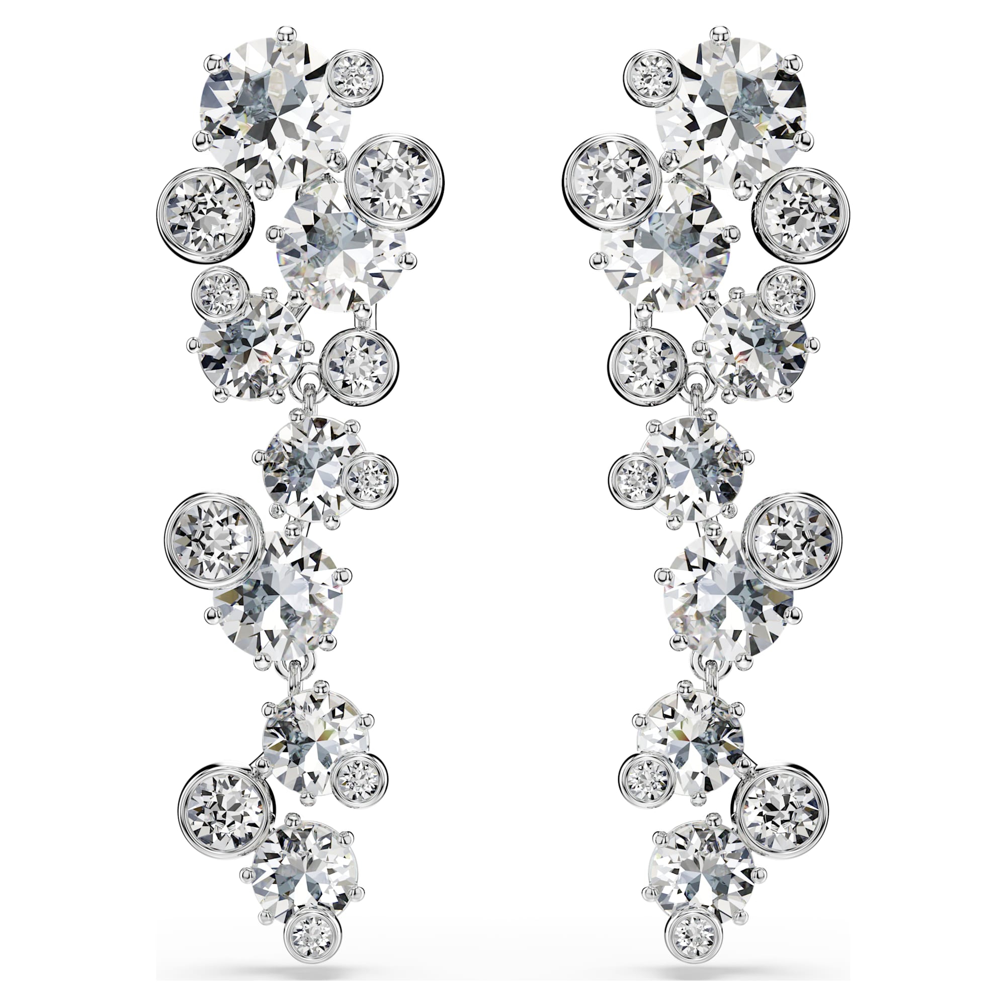 Illumina il tuo stile con questi orecchini Constella che catturano la luce. Ispirati a un universo di stelle, i fili placcati rodio presentano cristalli Cry di varie dimensioni, ciascuno in una montatura a griffe o a castone. Indossali insieme alla collana Constella coordinata per massimizzare la radiosità del tuo guardaroba.