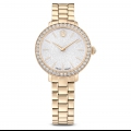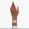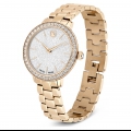 Ispirato ai gioielli Matrix di Swarovski, questo orologio da 30 mm cattura il medesimo senso di stile contemporaneo ed espressivo. Il design in acciaio inossidabile è rifinito in tonalità oro champagne e presenta una lunetta a pavé con 42 cristalli incastonati. Il quadrante, dalla splendida forma rotonda, è caratterizzato da un effetto glitter e include sottili indici e lancette, oltre al logo cigno a ore 12. Oltre a un ulteriore cristallo incastonato all?interno della corona, questo orologio si distingue per il suo bracciale a tre maglie, che scivola con eleganza attorno al polso. L?orologio Swiss Made è resistente all?acqua fino a 50 m ed è il compagno perfetto per ogni occasione.
