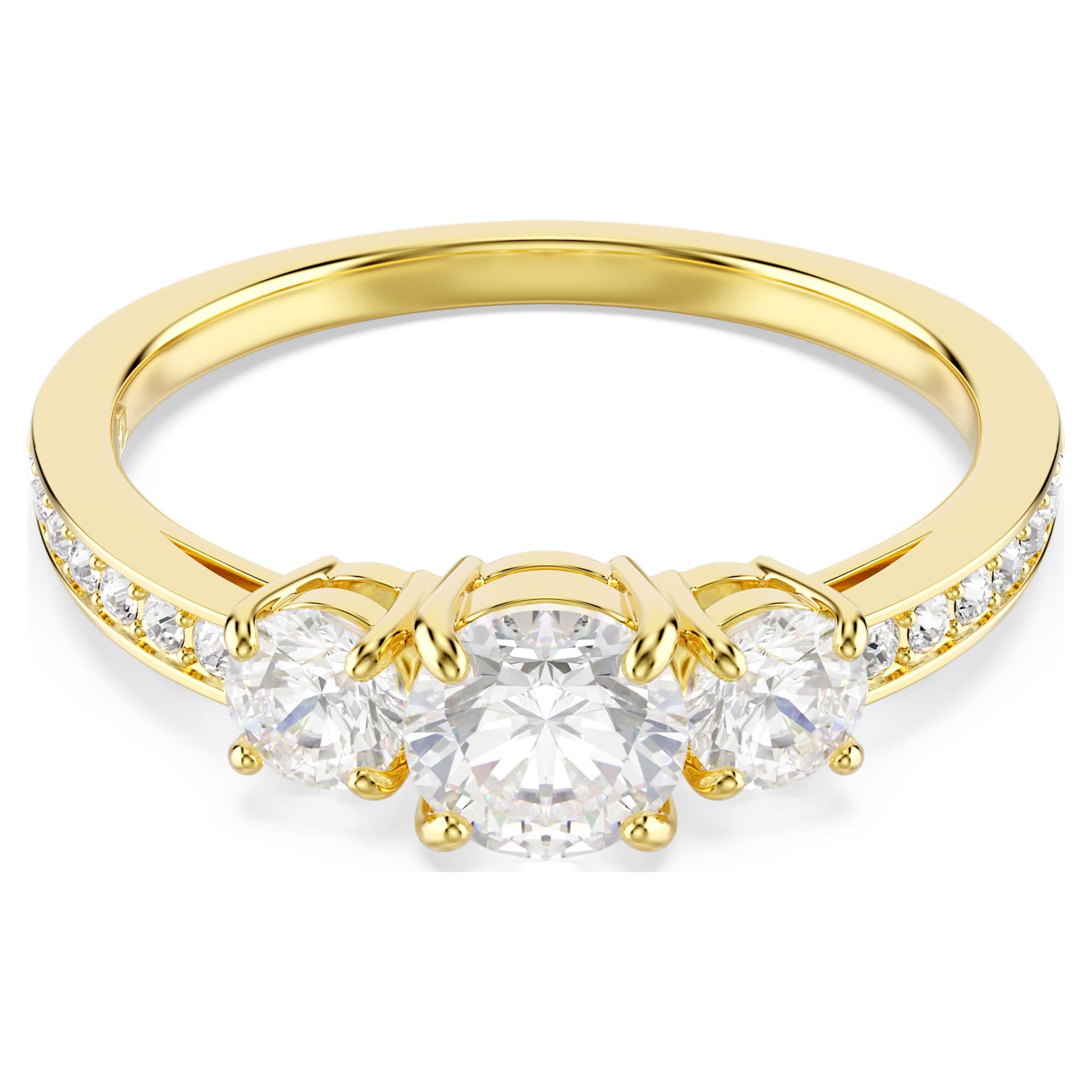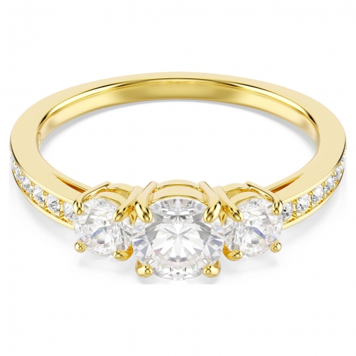Pensata per ogni occasione, la famiglia Stilla evoca pura eleganza. Questo classico anello porta la radiosità ad un livello superiore grazie ai cristalli Cry lungo la fascia e ad un trio di Swarovski Zirconia dal taglio di precisione su una brillante finitura in tonalità oro. Uno splendido gioiello da indossare tutti i giorni, facile da abbinare ad altre creazioni della stessa famiglia.