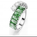 Questo ipnotico anello a fascia presenta una collisione di colori e forme. La fascia sovrapposta è placcata rodio con Swarovski Zirconia trasparenti e verdi con tagli Round e Baguette. Una scelta vivace che si abbina splendidamente al bangle e agli orecchini coordinati.