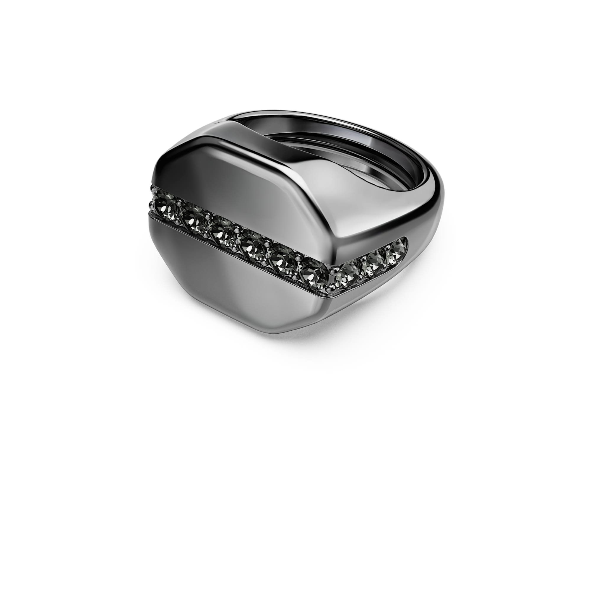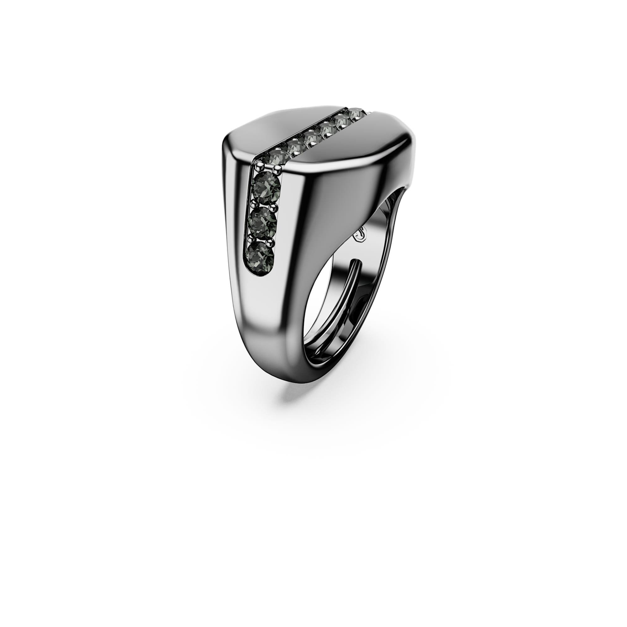 Uno straordinario contrasto chiaro-scuro, questo anello con castone Dextera è la scelta perfetta per uno stile alternativo. La fascia è placcata rutenio per una finitura metallizzata e presenta una striscia di cristalli neri argentati ispirati al cielo notturno. Per un tocco di innovazione in più, l?anello include un meccanismo regolabile per adattarsi a tutte le misure. Indossalo insieme a un pendente o a un bangle coordinato per completare il tuo look.