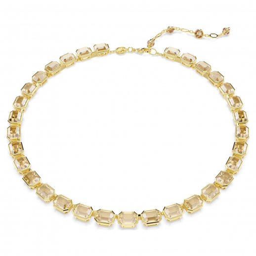 Amplifica il tuo lusso per tutti i giorni con le ricche sfumature di questa collana Millenia. Il design all-around placcato in tonalità oro è stato pensato per catturare la luce con una fila interamente articolata di cristalli ottagonali in una sfumatura dalla tonalità oro. Ogni sezione dà prova della maestria delle tecniche di montatura a castone di Swarovski, mentre l?extender sul retro permette di regolare la vestibilità. Concediti una coccola o fai un regalo a una persona cara.