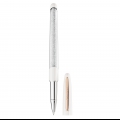 Molto più di un semplice strumento di scrittura, questa penna roller Crystalline è impreziosita da circa 400 cristalli Cry, grazie all?utilizzo della tecnica unica Crystalline. Una clip placcata in tonalità oro rosa impreziosisce il fusto e il cappuccio bianchi lucidi. Questa penna roller dalle linee sottili è un?idea regalo originale. I refill d?inchiostro nero e blu sono disponibili per l?acquisto presso gli store Swarovski.