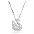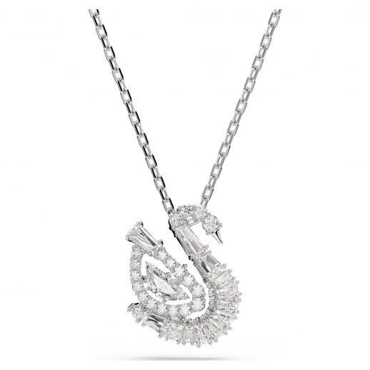 Questo pendente trasmette il movimento aggraziato dell?iconico cigno Swarovski. Sospeso a una catena placcata rodio, il motivo centrale rivela un?elegante silhouette, impreziosita da Swarovski Zirconia e da una dancing stone trasparente con taglio a forma di silhouette di cigno. Questo radioso dettaglio crea un moto perpetuo di luce, e farà brillare il tuo stile in ogni momento.