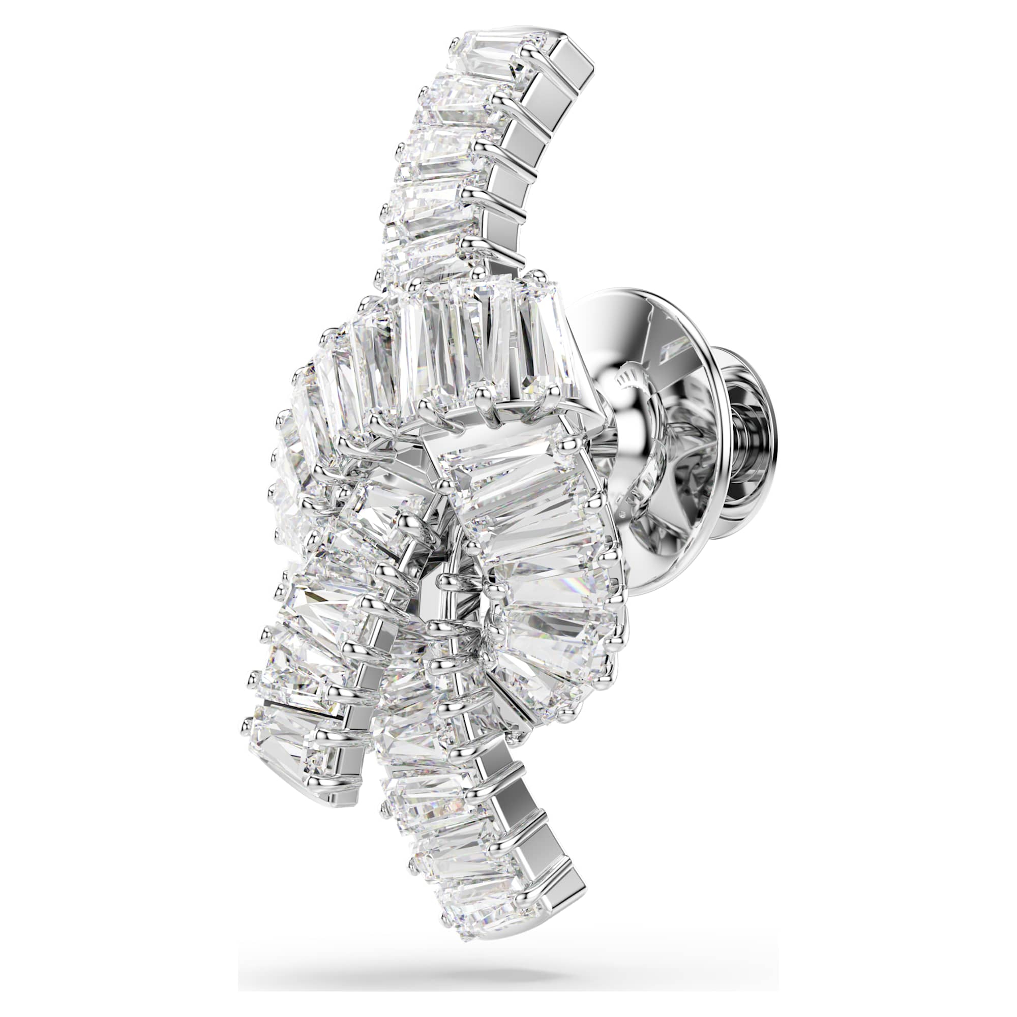 Aggiungi un tocco di luce a qualsiasi outfit con questa attraente spilla. Il motivo placcato rodio è ispirato a un nastro e presenta una decorazione annodata di Swarovski Zirconia taglio Baguette. Sensazionale da sola, o splendidamente accompagnata dalle creazioni coordinate della stessa famiglia di gioielli.